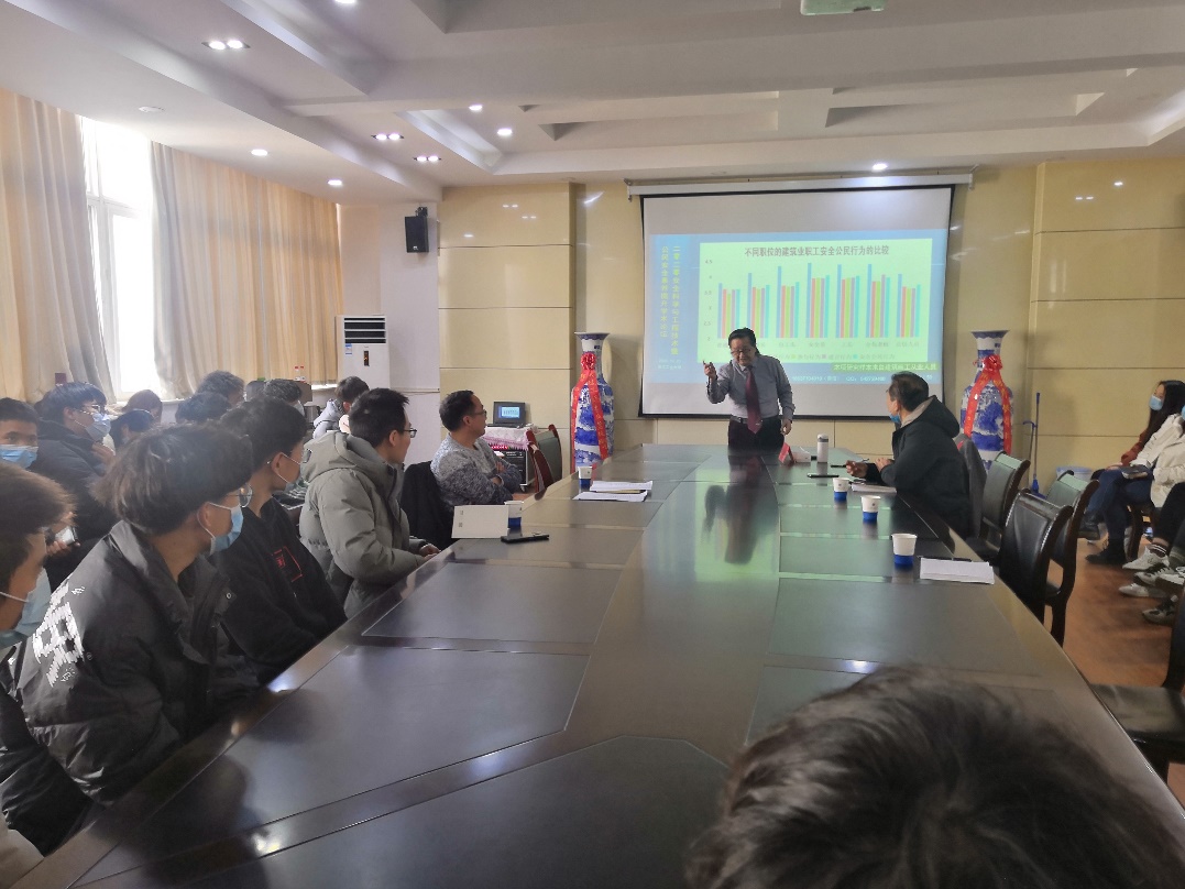王新泉教授首先以“公民安全行为与社会人口统计特征变量相关性的实证研究—以建筑施工行业从业人员为样本”这一主题对我国建筑施工行业安全生产状态进行了深入的解读。通过对建筑施工从业人员的性别、年龄、受教育水平、婚姻状态、工程项目类型、用工形式、工作职位、工种类型、工作年限、工作时间等因素阐述了公民安全行为存在显著差异。并对建筑安全发展前沿、安全工程特色专业建设、本科生培养、教师科研等内容进行了深入交流,解答了同学们感兴趣的工作、读研等问题。