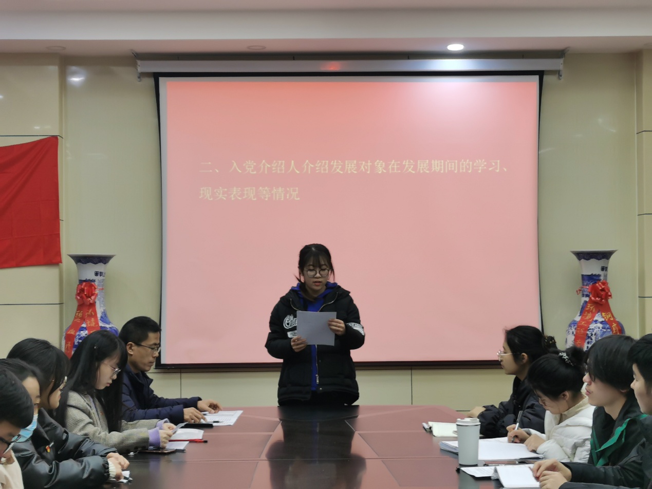 (通讯员 冯兴华)12月23日,员工第一党支部在9A315会议室召开党员大会,讨论研究张军政等10名同志入党和边一凡等9名同志转正问题。大会应到正式党员14人,实到13人,1人请假。会议由支部书记冯兴华主持。