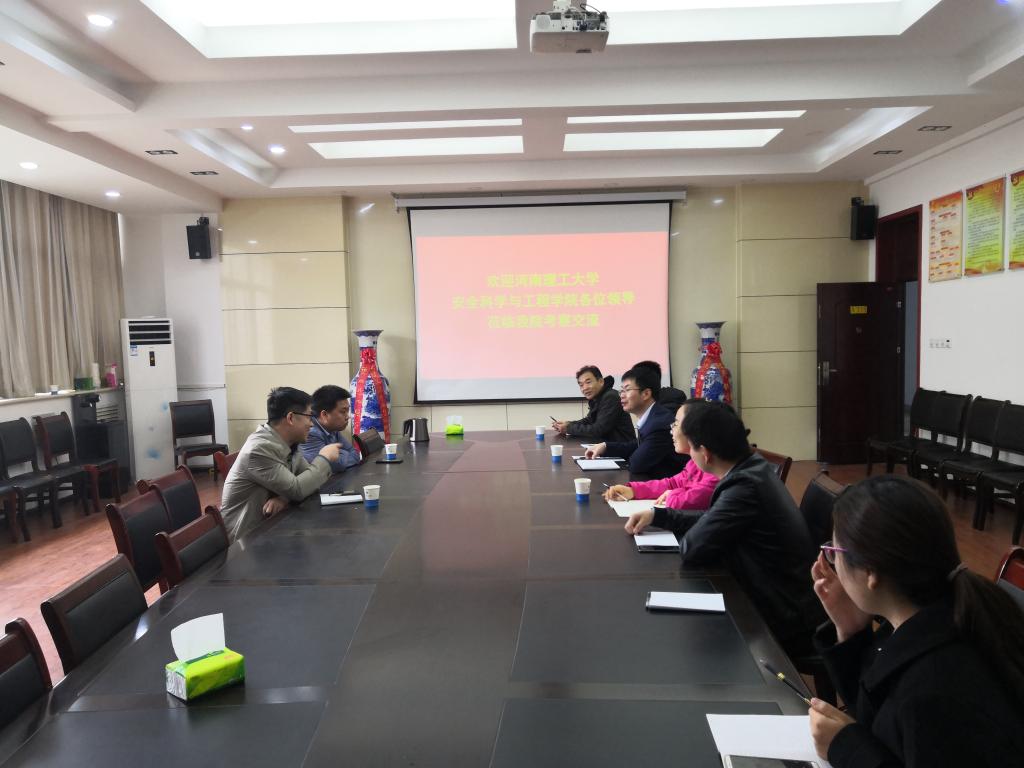 (通讯员:贾炳、万祥云)10月6日上午,河南理工大学安全科学与工程公司副经理杨明、团队博士后晁江坤莅临太阳成集团tyc122cc进行交流,太阳成集团tyc122cc副经理万祥云、教务办主任贾彩云以及安全工程教研室部分教师参加交流会,会议在9A315会议室进行,由副经理万祥云主持。