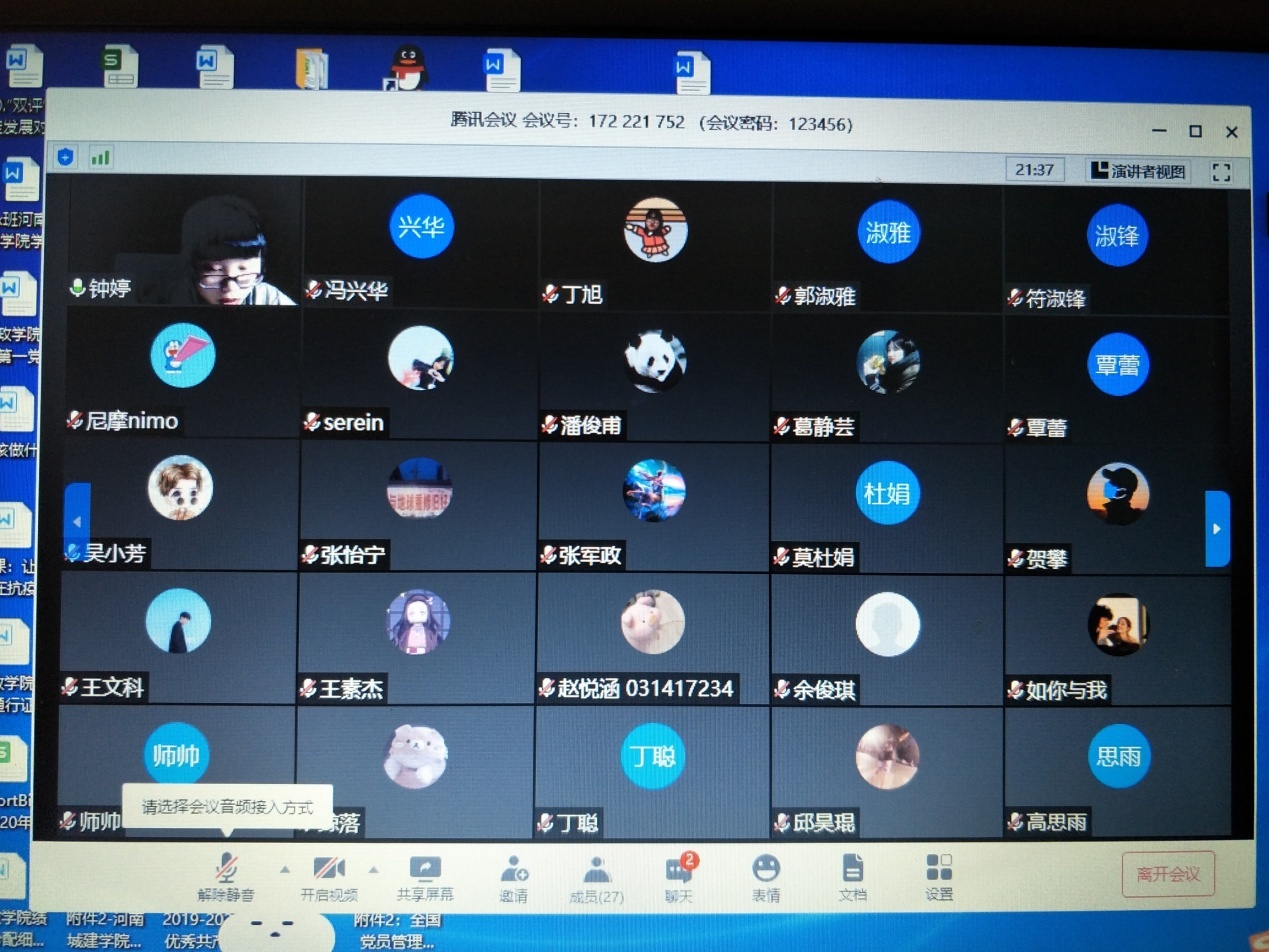 (通讯员 冯兴华)5月28日,太阳成集团tyc122cc员工第一党支部利用腾讯会议APP召开党员大会,以视频会议的形式讨论了王妞等5名预备期满的党员转正问题。支部书记冯兴华主持了会议。