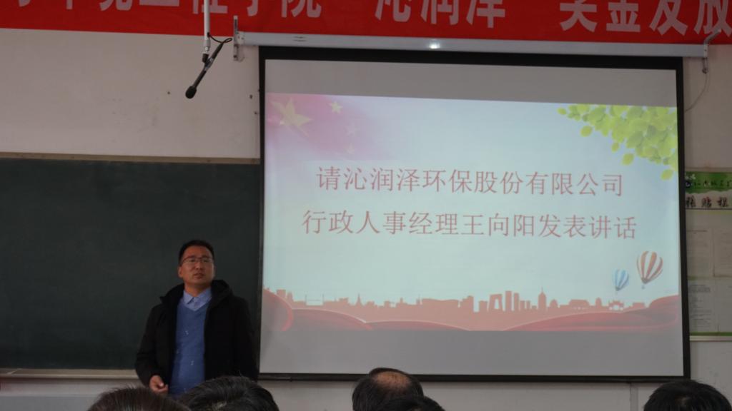 仪式上,沁润泽环保股份有限公司公司经理王向阳先生进行了发言,发言中提到了对获奖同学的肯定,同时也表示了对人才的期待,鼓励大家努力学习去提升自我,并且就公司招聘人才讲述了一些切身经历,鼓励大家吃苦耐劳,努力奋斗。