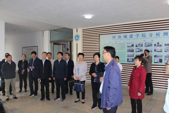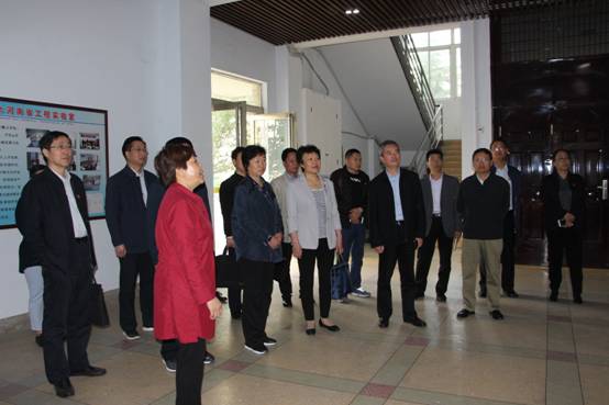 李萍一行参观了重点实验室,并就重点实验室的建设、高校服务地方、以及如何更好紧抓平顶山经济转型发展,更快的促进科研成果转化提出建设性建议。她指出环境污染防治是一场攻坚战,生态文明建设是一场持久战,高校应该以科技为引领,为我市污水治理工作提供科学指导,将科技成果转化运用到污水治理当中。