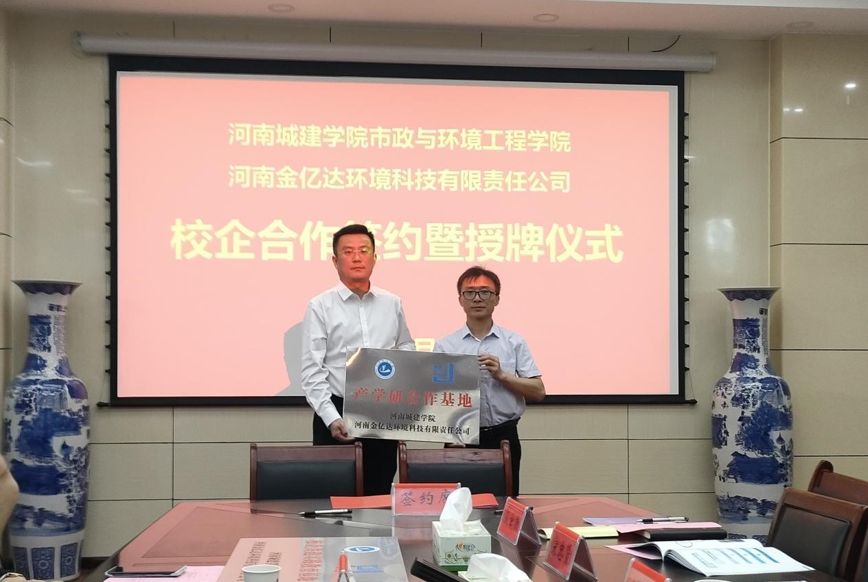 6月15日上午,公司与河南金亿达环境科技有限责任公司校企合作签约仪式在公司会议室举行。河南金亿达环境科技有限责任公司董事长乔晓磊、总经理乔晓广、技术总监史彦明、副总经理张肃冶、办公室主任王运杰以及公司经理朱新锋、副经理吴俊峰、刘彪出席了签约仪式,给排水科学与工程系、环境工程系、城镇先进环保技术河南省工程实验室、科研办等相关负责人参加会议。会议由刘彪主持。