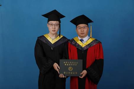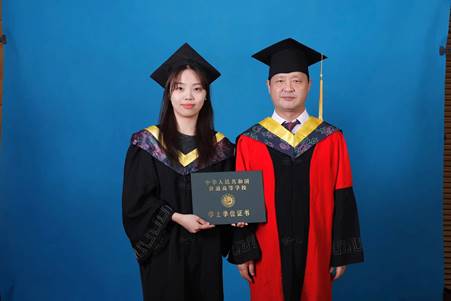 曹恒慧和姜忠峰为全体毕业生拨穗并合影留念。
