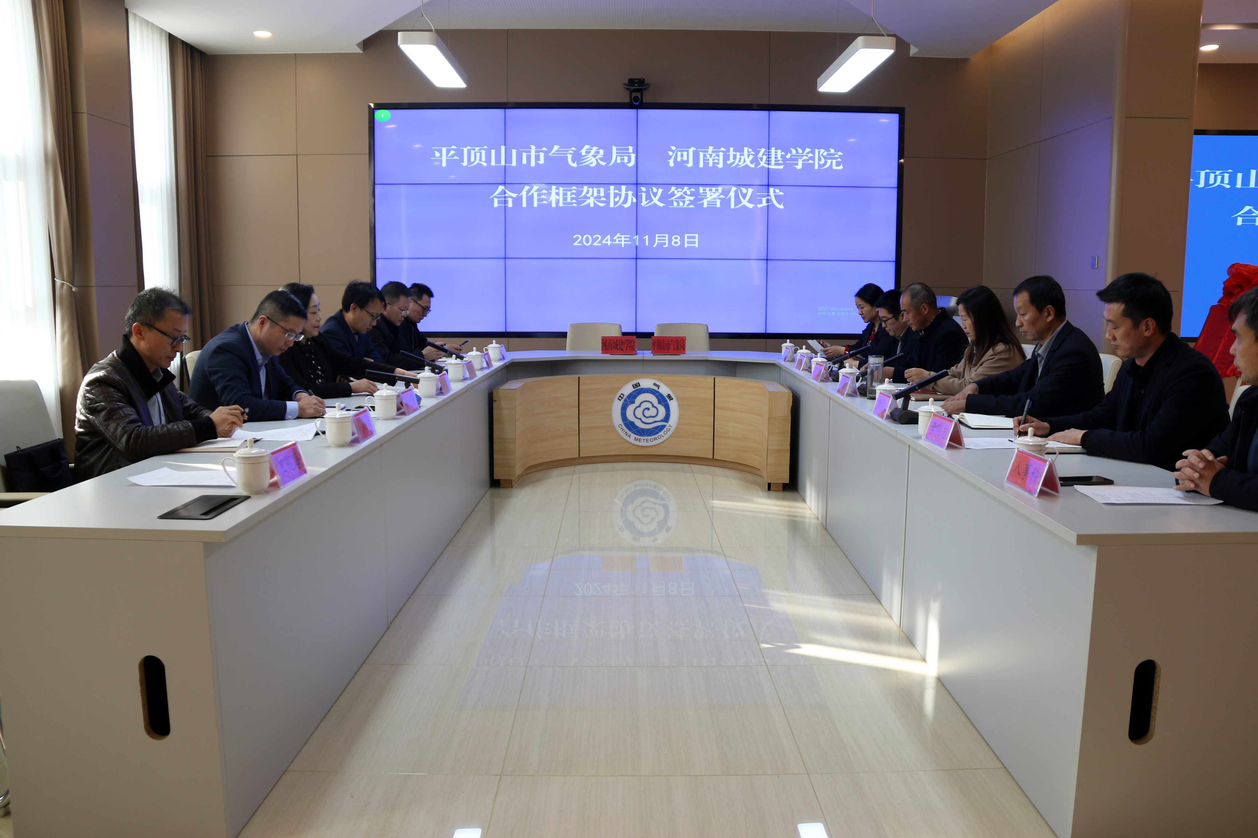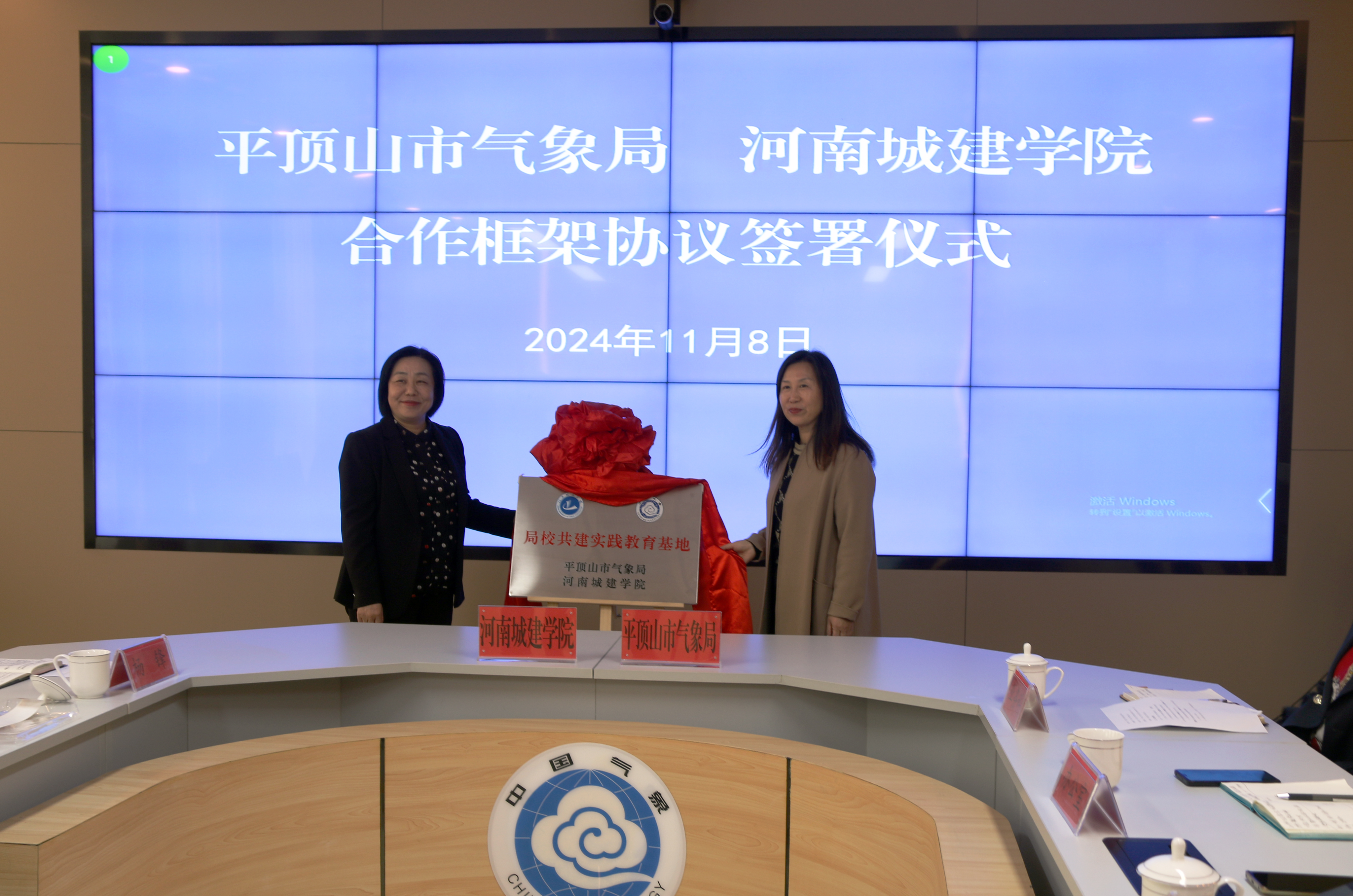11月8日下午,公司与平顶山市气象局战略合作签约仪式在平顶山气象局举行。公司副董事长毛艳丽,平顶山市气象局党组书记、局长孟丽丽出席鉴签并为实践教育基地揭牌。公司党委组织部、科研处、太阳成集团tyc122cc、生态环境治理研究院、测绘与城市空间信息公司等部门相关人员参加会议。