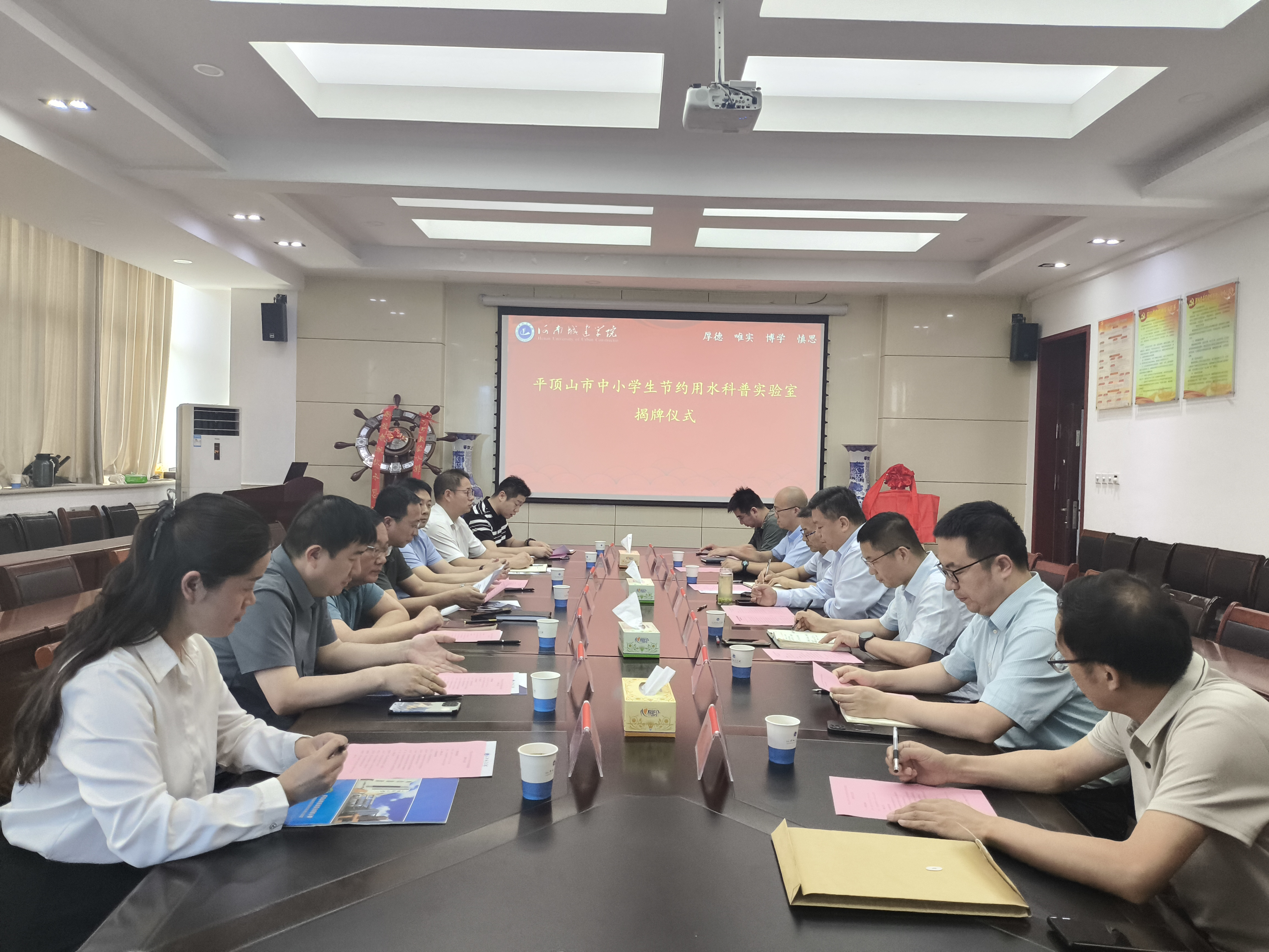 5月16日下午,平顶山市中小员工节约用水科普教育实验室揭牌仪式在9号楼A315会议室举行。公司科研处处长张大力,太阳成集团tyc122cc经理姜忠峰,平顶山市水利局党组成员、副局长陈敬伟,平顶山市机关事务中心副主任王念龙等出席仪式,平顶山市教育体育局,公明路小学及公司科研处、太阳成集团tyc122cc等部门相关人员参加仪式。会议由平顶山市节约用水中心张洋主持。