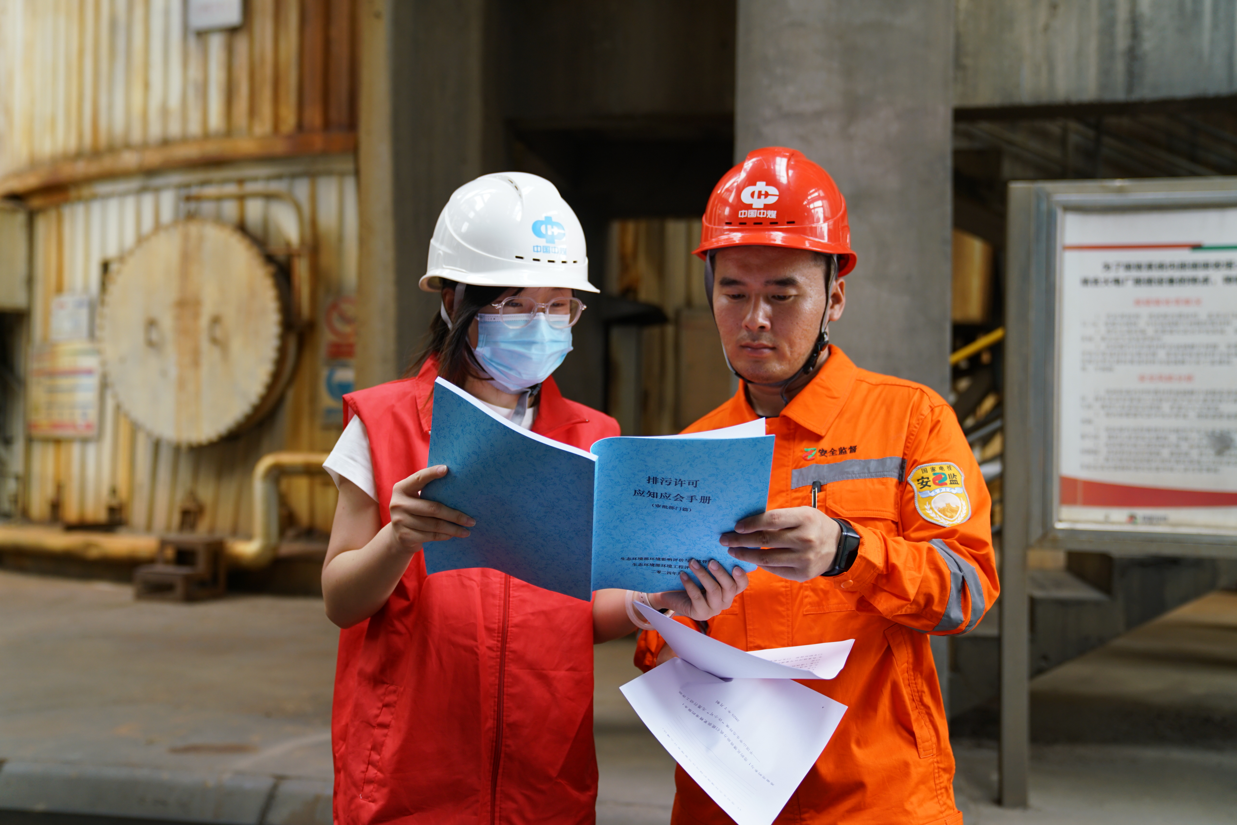 启动仪式后,志愿者走进平顶山姚孟发电有限责任公司开展首场助企服务。志愿者们向企业发放了《排污许可应知应会手册》、调查问卷,通过“一对一”答疑、案例解析等方式,讲解排污许可办理流程和常见问题。在厂区排污口,志愿者们对照《排污口二维码标识设置规范》,仔细核查排污口数量、位置及现有标识情况,逐一张贴规范化二维码。