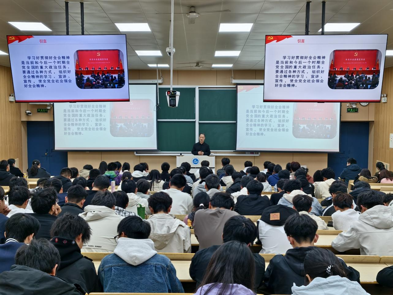 为深入学习贯彻党的二十届四中全会精神,11月11日下午,公司党委书记曹恒慧在10号楼B107为师生讲授了一堂思想深刻、内涵丰富的形势与政策课。全体辅导员及员工代表180余人参加了此次学习。