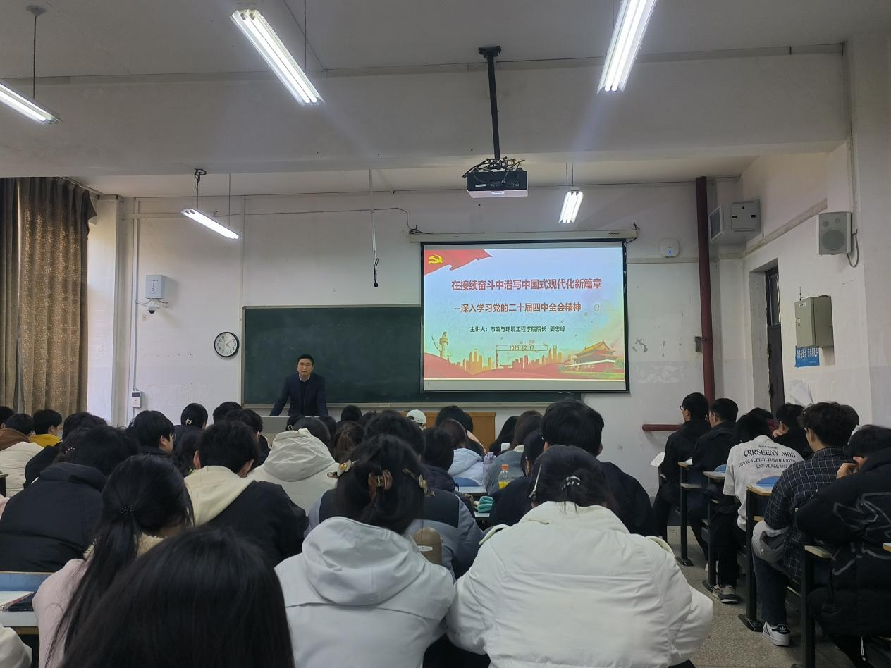 12月17日,太阳成集团tyc122cc经理姜忠峰在9号教学楼A408教室,以《在接续奋斗中谱写中国式现代化新篇章》为题,为公司员工讲授了一场主题鲜明、内容深刻的思政课,专题学习党的二十届四中全会精神。