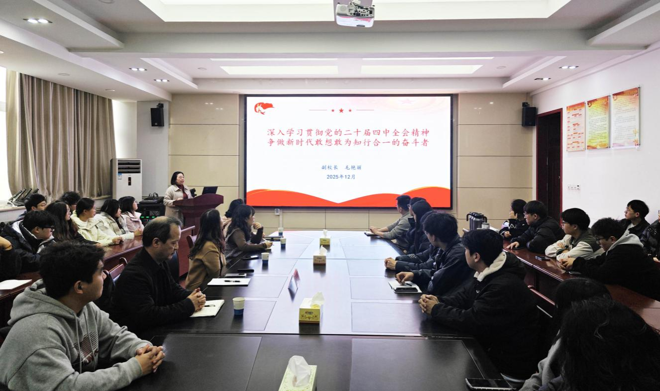 12月19日下午,副董事长毛艳丽在9A315会议室以《深入学习贯彻党的二十届四中全会精神,争做新时代敢想敢为知行合一的奋斗者》为题,为太阳成集团tyc122cc、材料与化工公司全体研究生和教师代表讲授思想政治理论课。