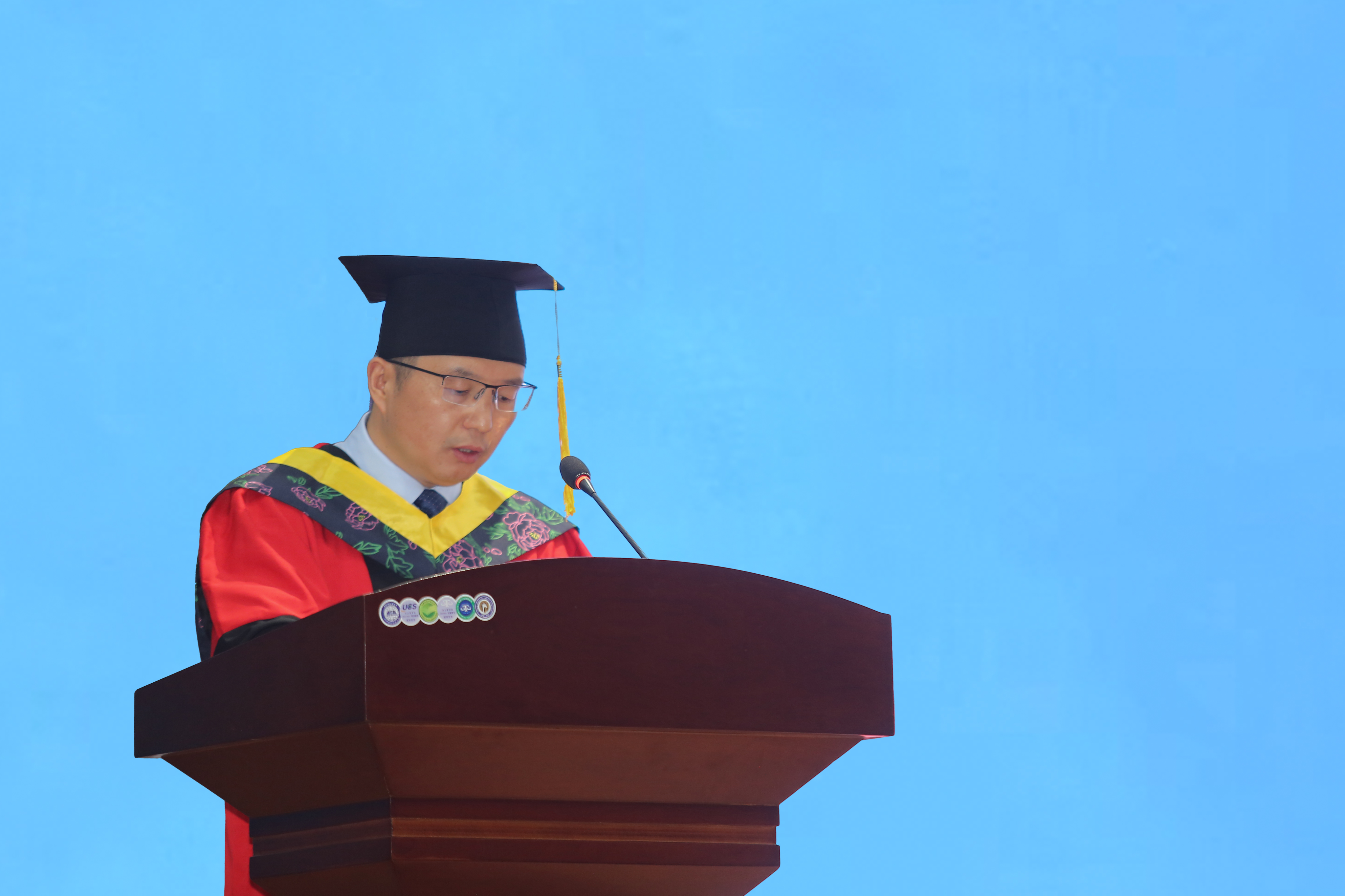 典礼上,经理姜忠峰教授在致辞中对同学们在校期间参与的各类学科竞赛、科研项目、社会实践,展现出的创新思维和钻研精神给予高度赞扬。同时,他对毕业生们提出了殷切期望,希望大家在未来的人生道路上,始终保持对知识的渴望和对真理的追求,勇于担当时代赋予的使命,以坚定的信念和不懈的努力书写属于自己的精彩人生。