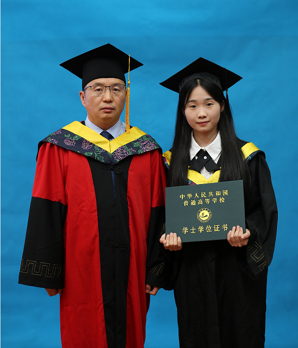 曹恒慧和姜忠峰为毕业生们逐一授予学位。身着学位服的毕业生依次登台,接受拨穗正冠并合影留念,收获真挚祝福。