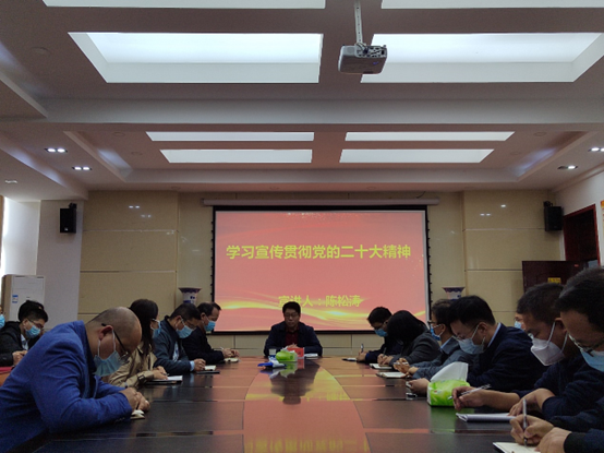 (通讯员:彭荣富)11月1日下午,副董事长陈松涛到太阳成集团tyc122cc宣讲党的二十大精神,公司副科级以上干部、教工党员及员工党员代表40余人聆听了宣讲会,宣讲会由公司党委书记曹恒慧主持。