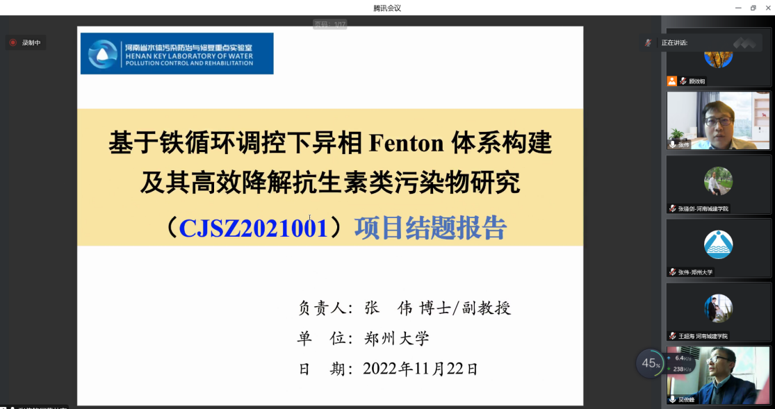 (通讯员:顾效纲)2022年11月22日下午,河南省水体污染防治与修复重点实验室(以下简称“重点实验室”)组织召开2021年度开放基金结题评审答辩会,会议通过线上方式召开。