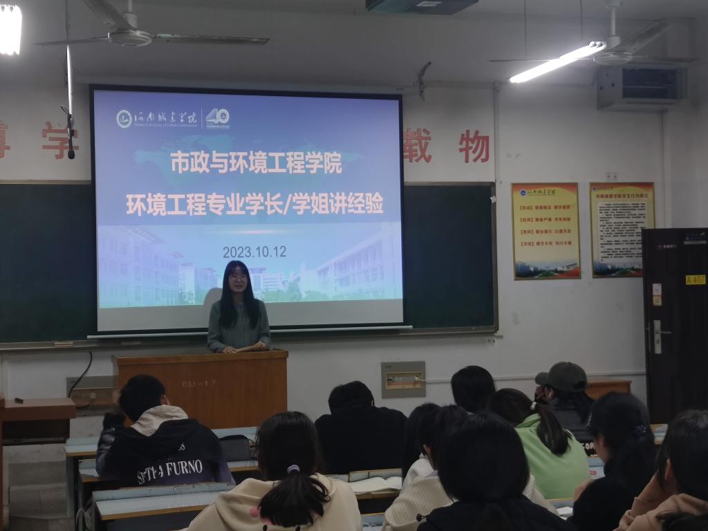 宋忠贤介绍了环境工程专业的培养目标、课程设置、学制学分、课程考核、学分绩点等方面内容,让新生对公司的教学工作有深入的了解,也让新生知晓了刻苦钻研专业知识、打牢专业基础的重要性。