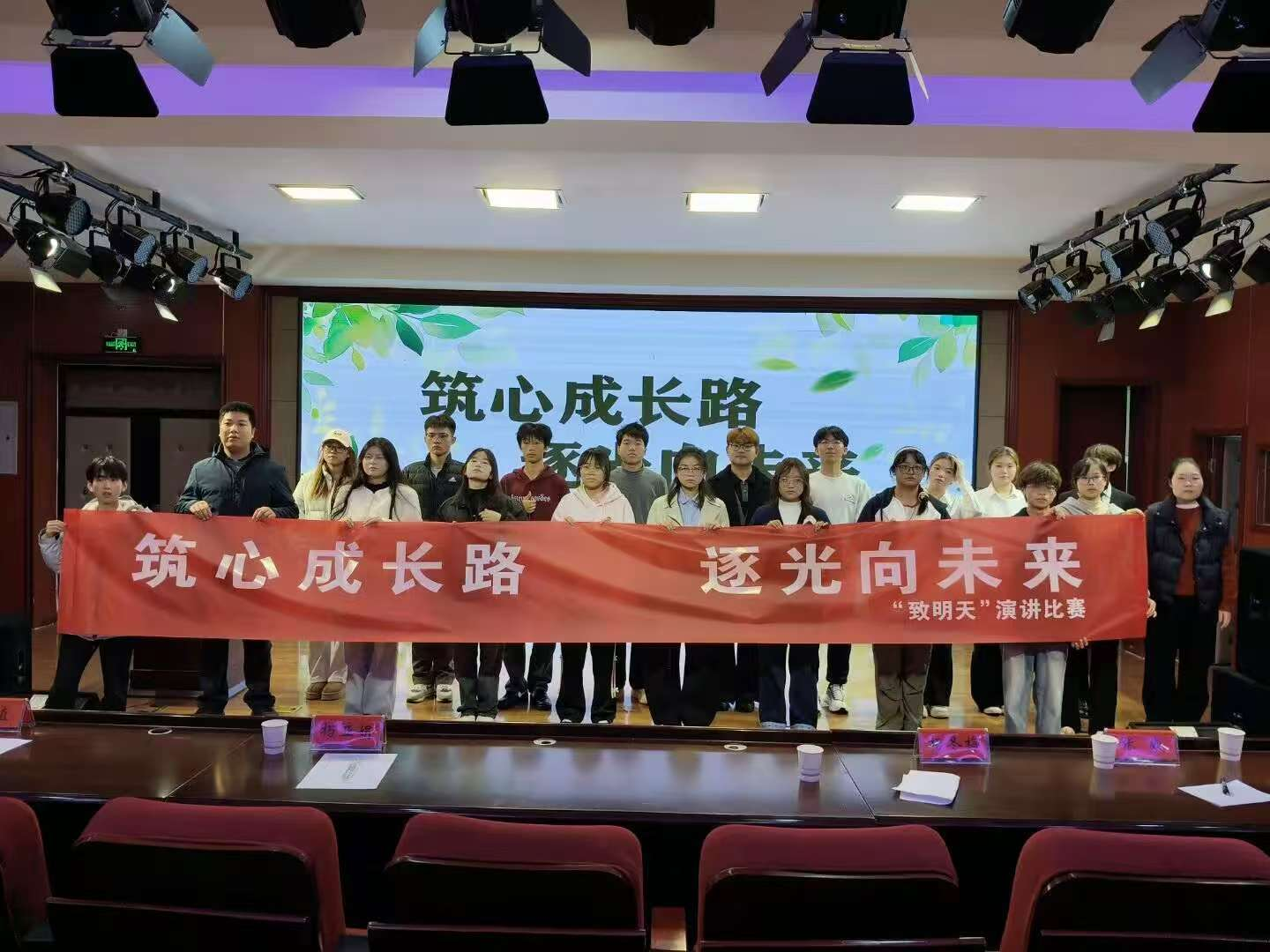 决赛在激昂的开场音乐中拉开序幕。相较于初赛的线上展示与复赛的基础演讲环节,本次决赛中,选手们将动态PPT展示与定制背景音乐深度融合,围绕“筑心成长路,逐光向未来”核心主题,结合个人成长经历与现实思考,用真挚的情感、流畅的表达与饱满的热情诠释对主题的独特理解。部分选手以校园生活为蓝本,分享了在学业压力与社交困惑中自我调节、筑牢心理防线的实践历程;有选手聚焦青春理想,讲述了追逐梦想途中坚守初心、向阳而生的感悟体会;还有选手结合社会热点,探讨当代青年如何以坚韧心态直面挑战、书写人生华章。比赛现场,选手们台风稳健、肢体语言自然得体,演讲时而深情款款、时而慷慨激昂,精彩表现多次引发全场共鸣,掌声与欢呼声持续不断。
