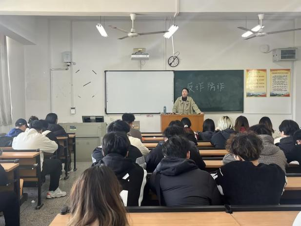 班会以近期高校高发诈骗案例为切入点,重点分析了“刷单返利”“冒充公检法”“冒充客服退费”“虚假购物服务”及“虚拟网络游戏产品交易”等常见诈骗类型。辅导员深入剖析各类骗局的手法与套路,引导员工擦亮双眼、摒弃贪念,切实增强防骗能力。